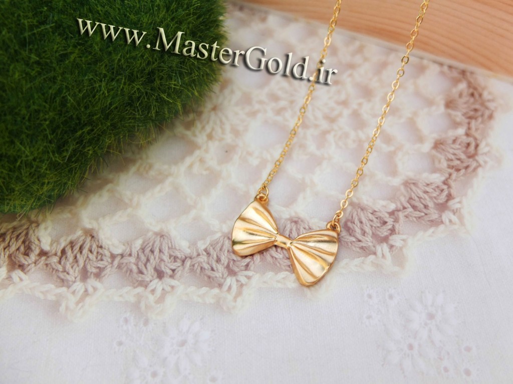 گردنبند پاپیون در سه رنگ طلای زرد , طلای سفید و رز گلد : به طور قطع به یقین اولین ذهنیتی که پس از شنیدن کلمه پاپیون به ذهن ما متبادر می شود تکه پارچه ای است که آقایان و بعضا خانم ها در مراسمی خاص به دور یقه پیراهن خود گره می زنند.اینک با الهام از همان تکه پارچه , گردنبند پیش رو طراحی و ساخته شده است.